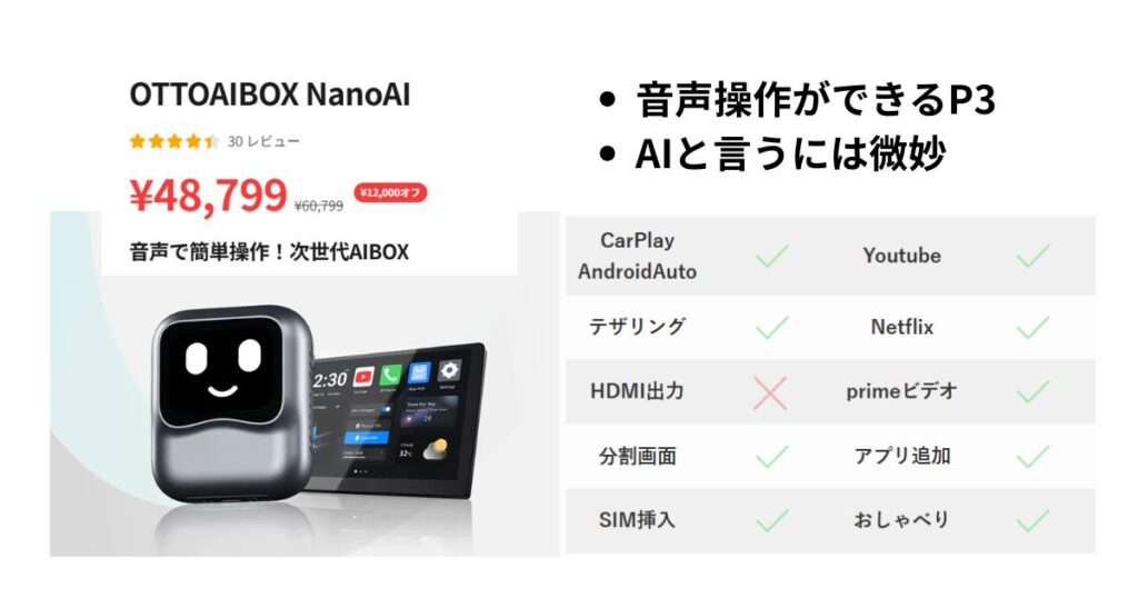 が、実はP3の対応車種って決まっていまして、それはCarPlay/AndroidAuto対応のナビが入っている場合に限ります。