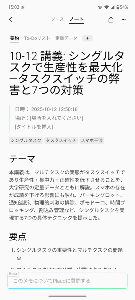 この辺りのPLAUDの優秀さ、というか、AIという相棒の優秀さですよね。