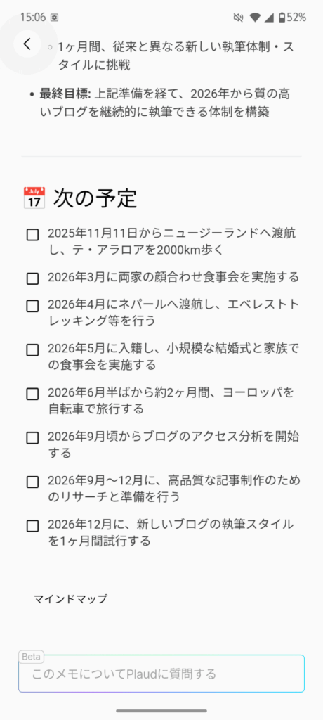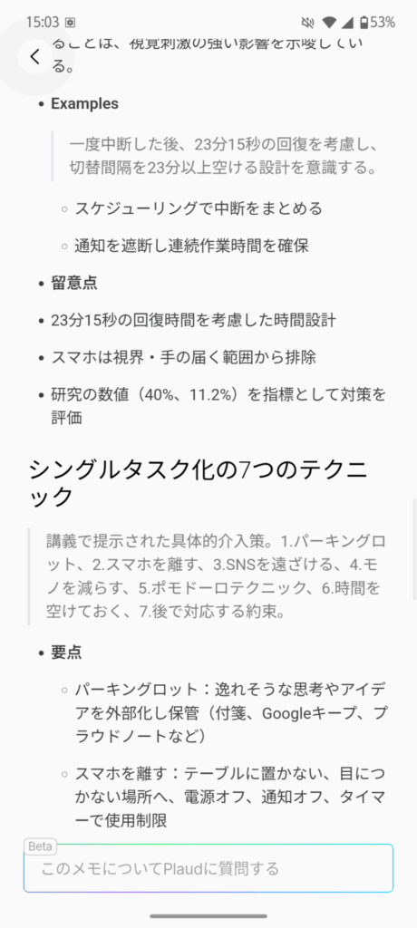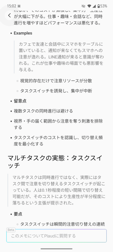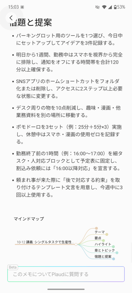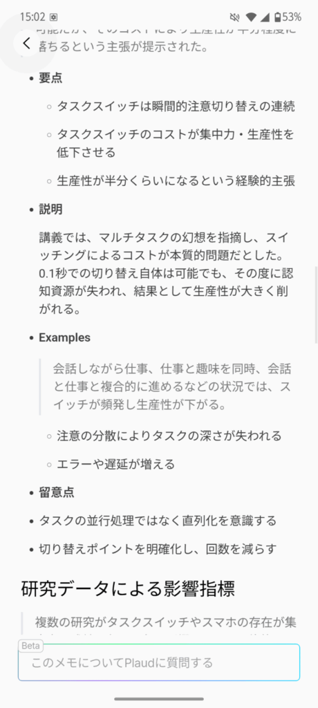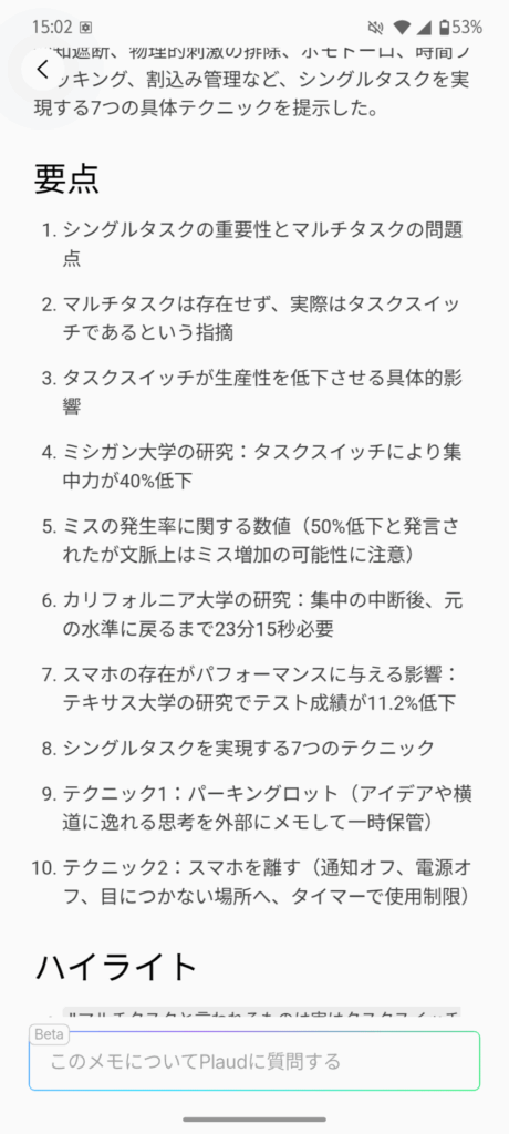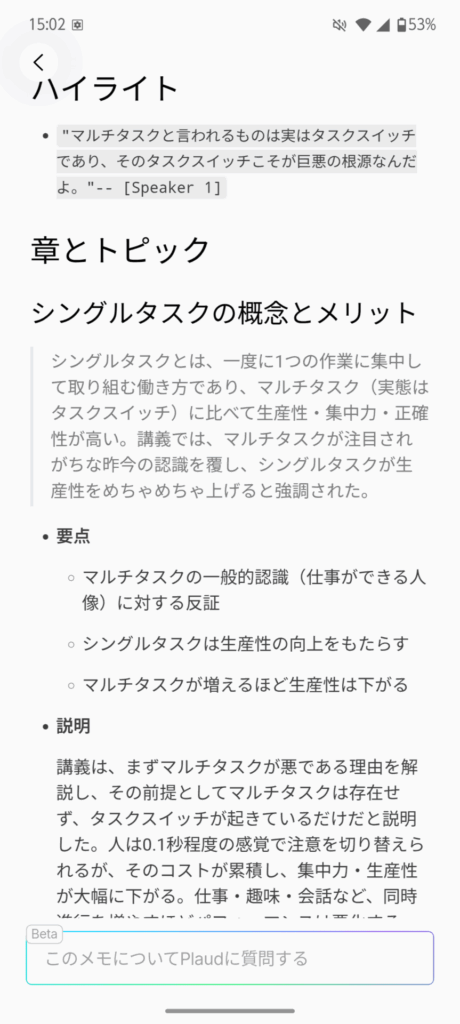 って考えると、PLAUD AIのまとめは非常によくできている流れから始まっている、って事になる。