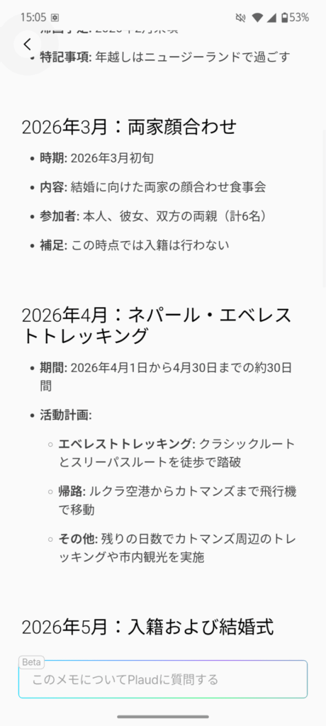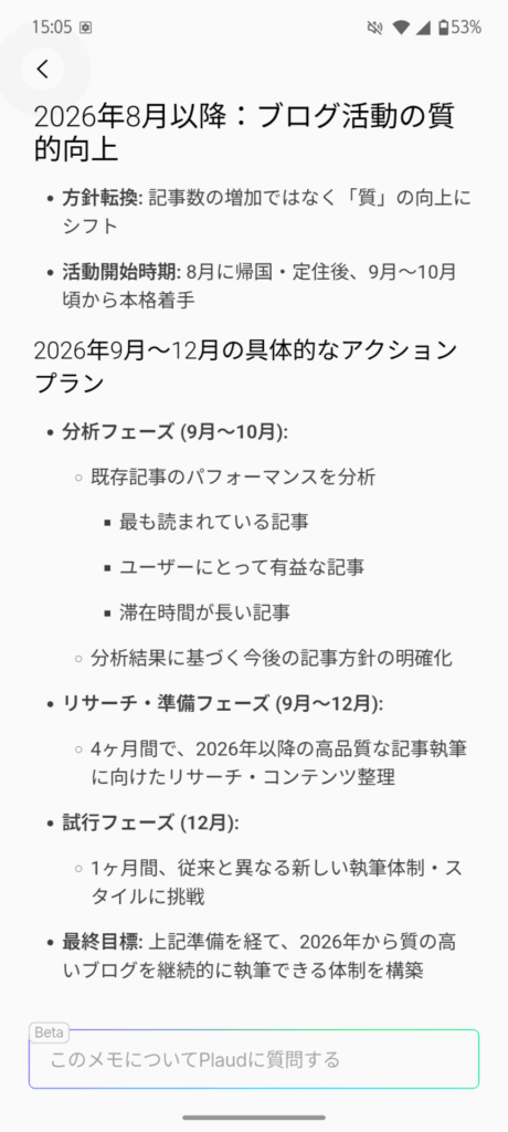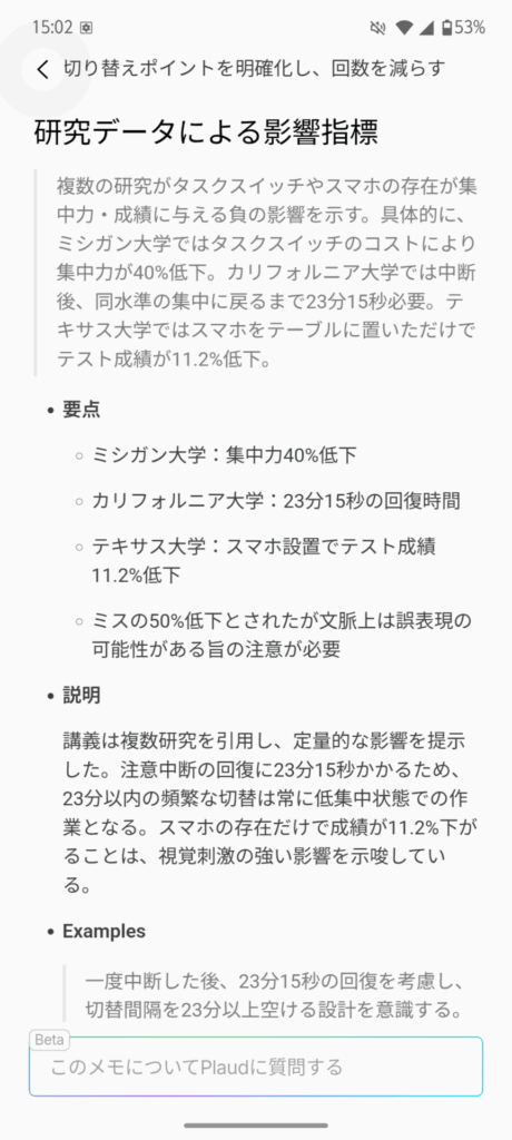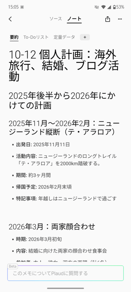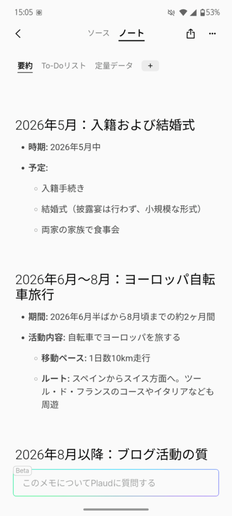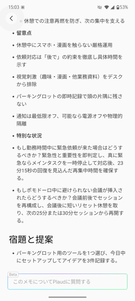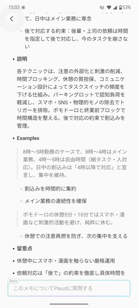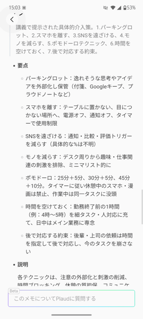 って考えると、PLAUD AIのまとめは非常によくできている流れから始まっている、って事になる。