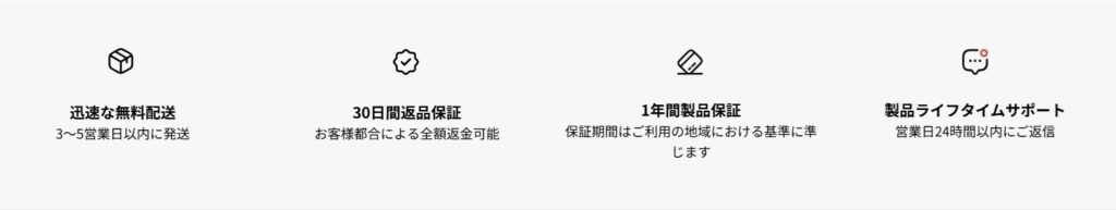 - 30日間の無条件返品:商品を受け取った日から30日以内であれば、製品一式(主要機器および同梱付属品)の返品を申請し、全額返金を受けることができます。