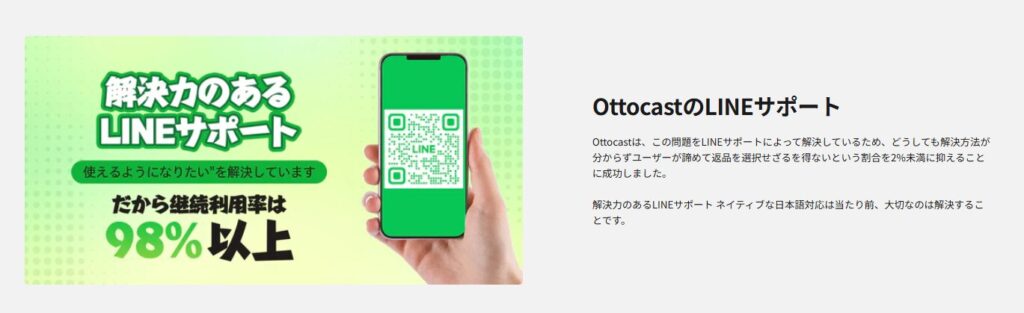 日本企業のMILELはサポート的にメリットがあると言われるブログもありますが、オットキャストもLINEによる日本語サポートが充実。