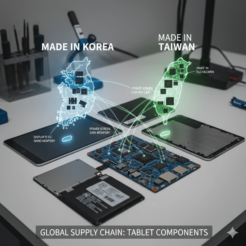 タブレットの心臓部であるCPUやメモリ、ディスプレイパネルといった基幹部品の多くは、海外メーカーによって開発・製造されています。