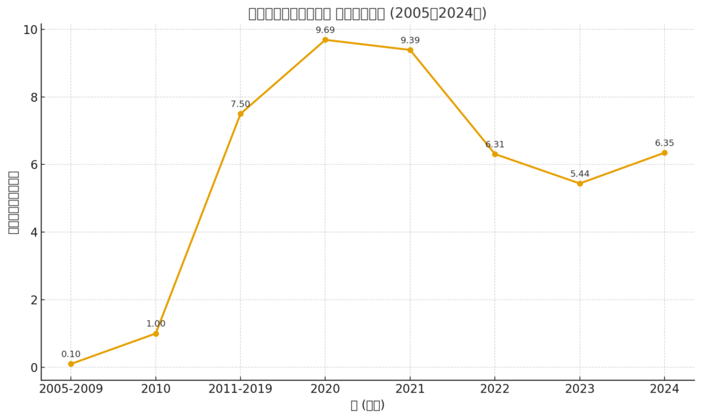 AIに生成してもらいましたが、おおよそ2020年をピークに、市場は0.7倍くらいになっていますね。