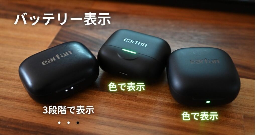 Air Pro 4はバッテリー残量を3段階のライト表示でしたが、AIr Pro 4iと4+からは、色で表示されるようになりました。