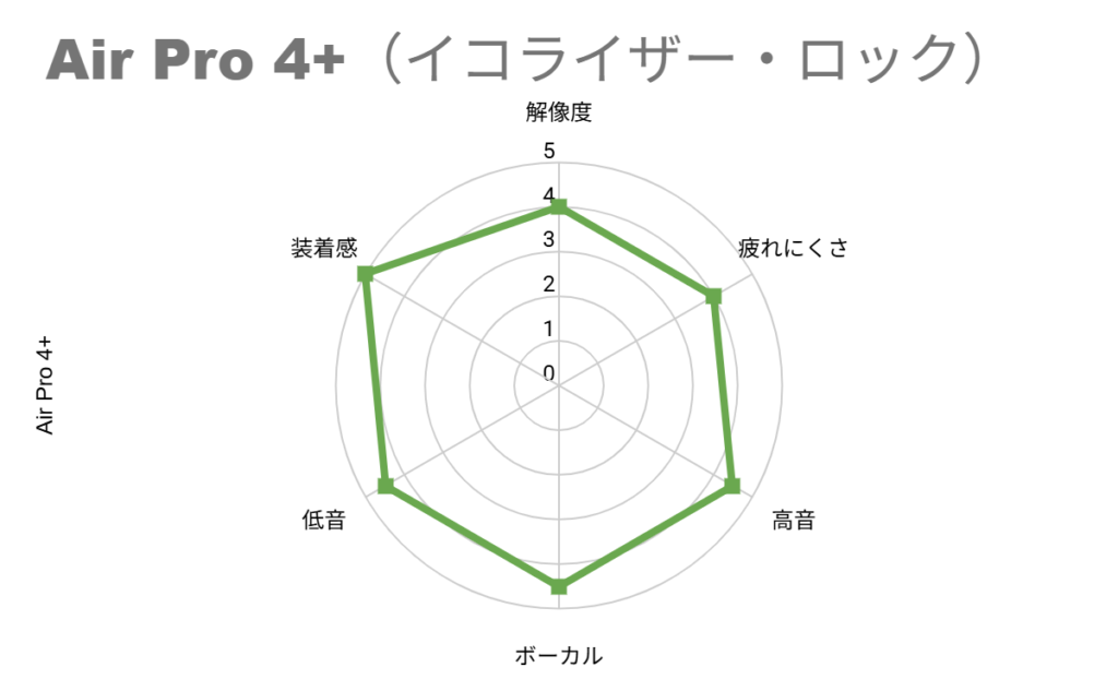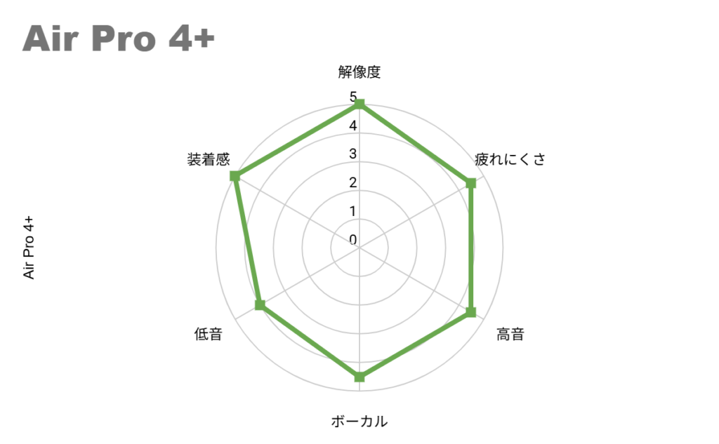Air Pro 4より繊細な音を拾いつつ、解像度も高く、バランスの良い重低音。
