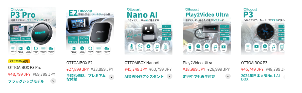 | E2 | Play2Video Ultra | NanoAI | P3 | P3 Lite | i3(BMW専用) | Play2Video PRO | PICASOU 2 | PICASOU 2 Pro | ||