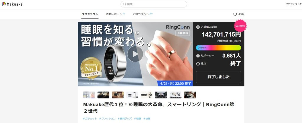 そして結局、MakuakeでリリースされたRingConn Gen2も爆売れ。