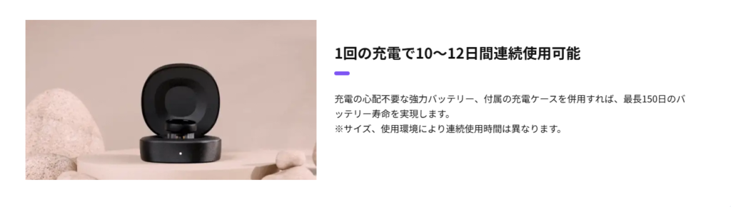 多くのスマートリングが4〜7日程度の稼働である中、Gen 2は1回の充電で最大12日間も持続します。
