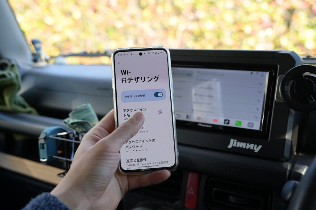 スマホ側の設定で、WifiテザリングをONにします。