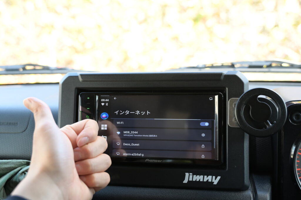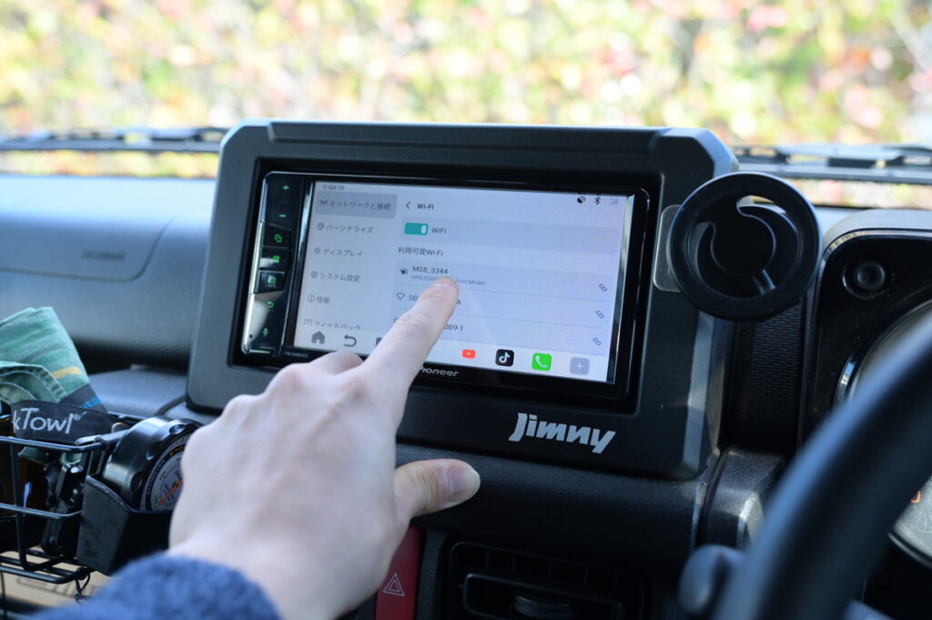 今回はテザリングで接続するので、ナビ(オットキャスト)側の「設定」アイコンから、ネットワークと接続をタップ。
